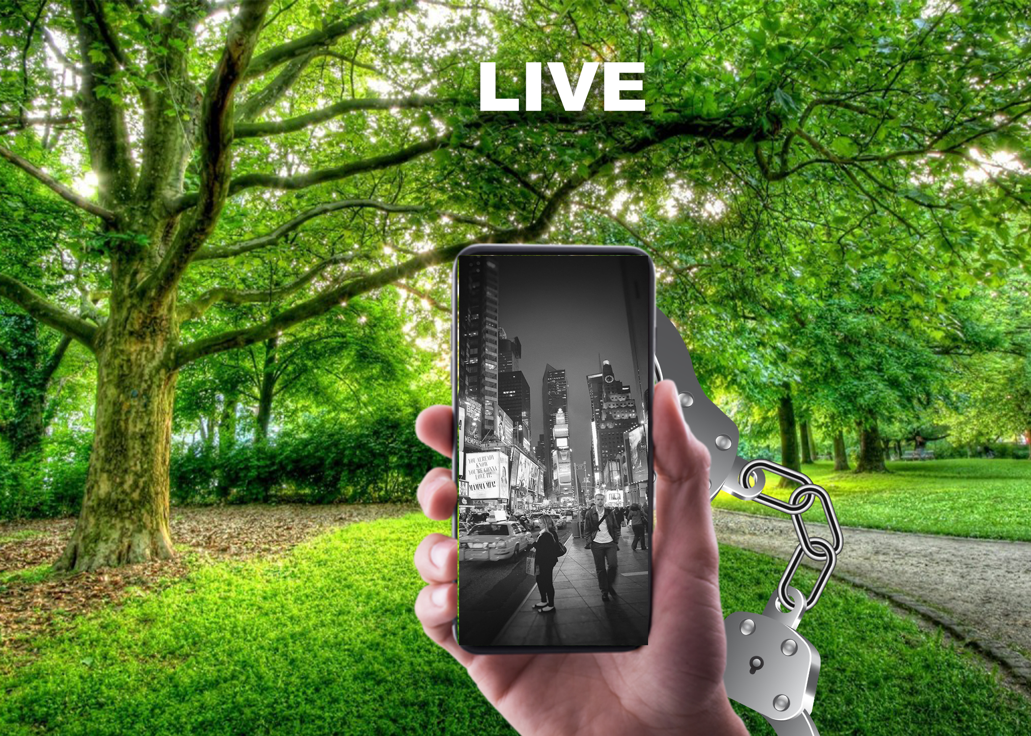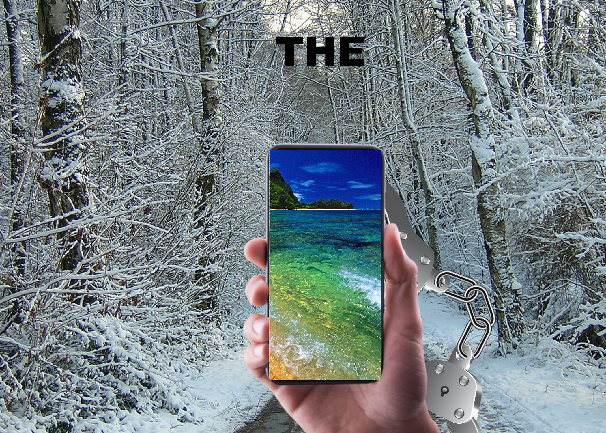 The three images below are part of a panel that responds to the Allen Ginsberg quote: “Whoever controls the media, the images, controls the culture.” They are meant to be read from left to right, which is why they are oriented this way. The main idea with these images is how the culture in the United States is figuratively “handcuffed” to their smartphones. The figurative is brought into a literal sense here. Are we truly living in the moment if are attached to our phones no matter where we are? Can we live in the present or are we shackled to whatever image is currently on our smartphone? Is this a bad thing? What controls what? Who controls who?